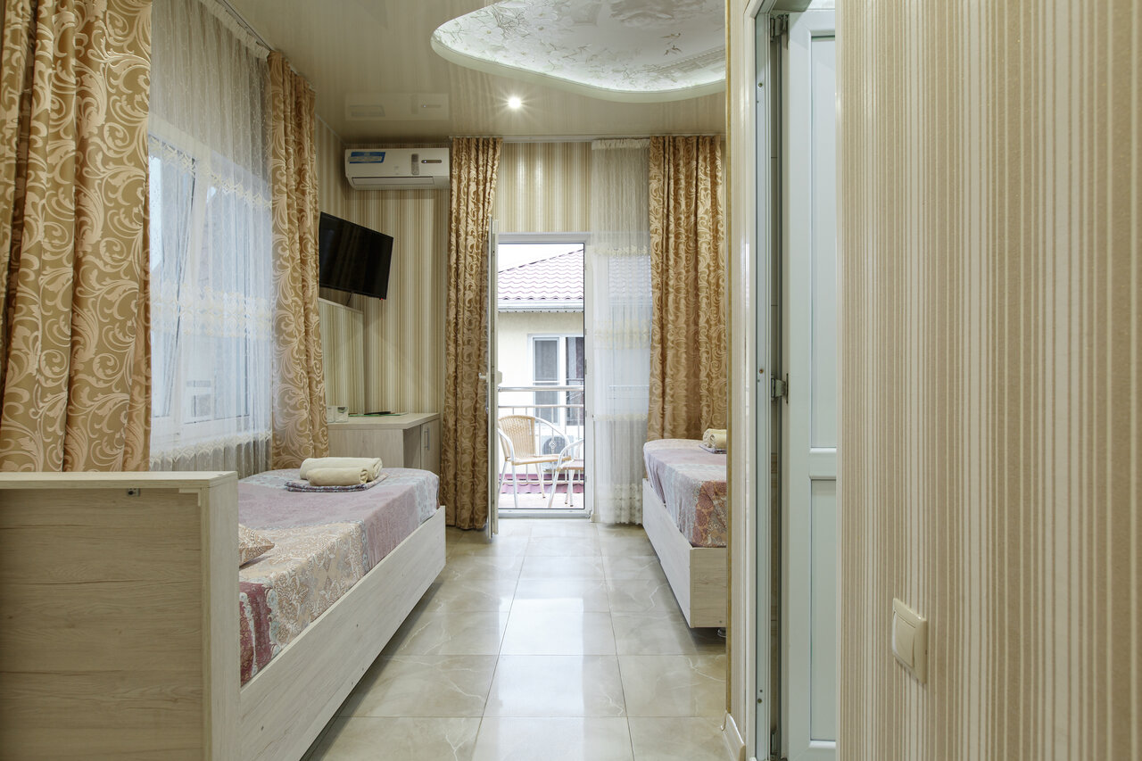 Хорошо на два-три дня, море далеко,в двери щели , все слышно .А так все нормально,телик,кондей,душ,столовка-цены на питание оптимальные.